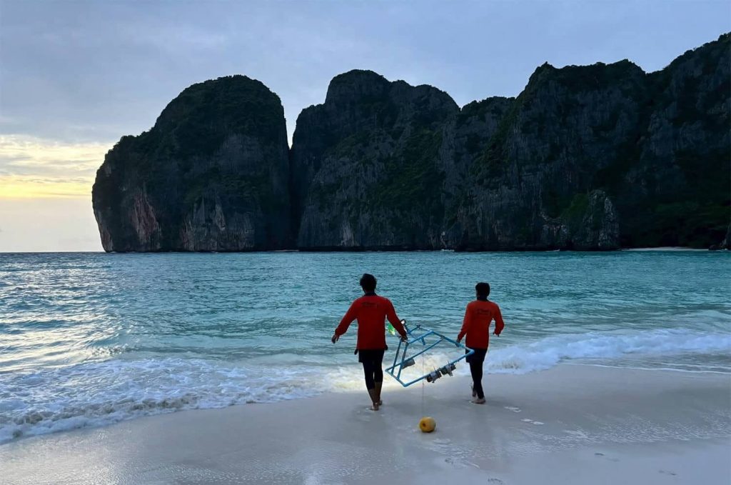 On the morning of July 3, researchers deployed aerial drones and underwater cameras, known as BRUV units (baited remote underwater video), to monitor the graceful predators moving through Maya Bay’s clear waters.