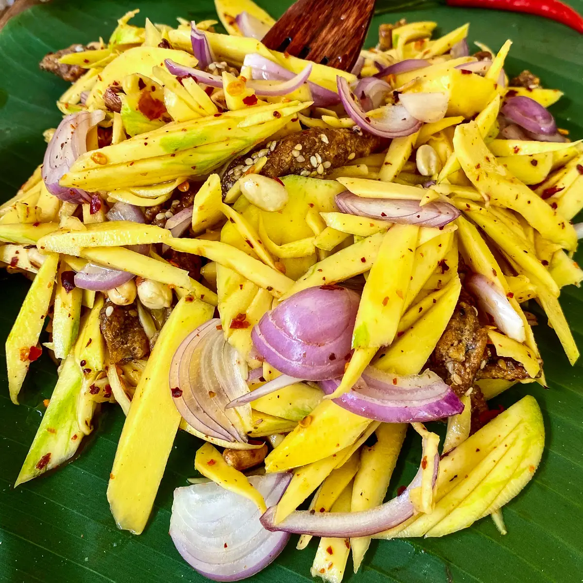Yum Mamuang, or Thai green mango salad, is a popular dish made from shredded sour green mango and a bold, tangy dressing. It’s a refreshing and healthy salad enjoyed in Thailand all year round. This dish is perfect for those who love a mix of sour, sweet, and spicy flavors in every bite.